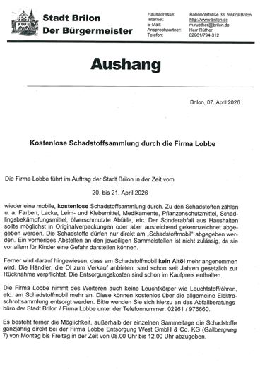 Kostenlose Schadstoffsammlung der Firma Lobbe
