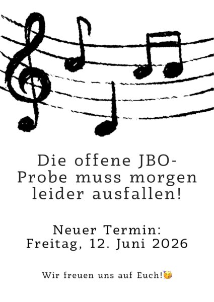 Die offene JBO-Probe morgen muss leider ausfallen!