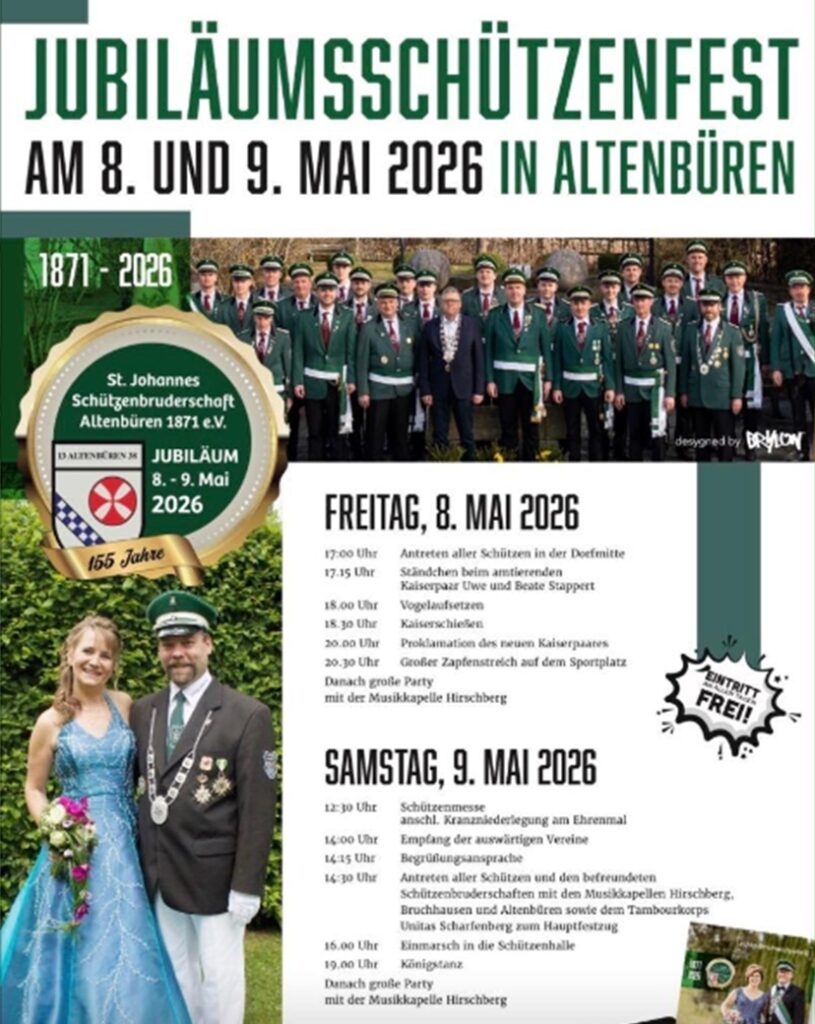 155 Jahre St. Johannes Schützenbruderschaft Altenbüren – dieses Jubiläum wollen wir mit Euch feiern: